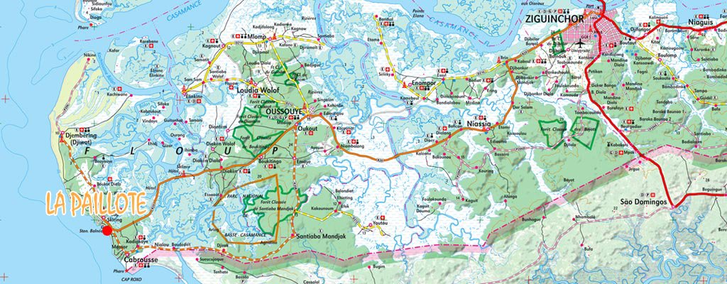 - liaisons aériennes multi quotidiennes de l’Europe vers Dakar puis quotidiennes de Dakar vers la Casamance (1 heure de vol)